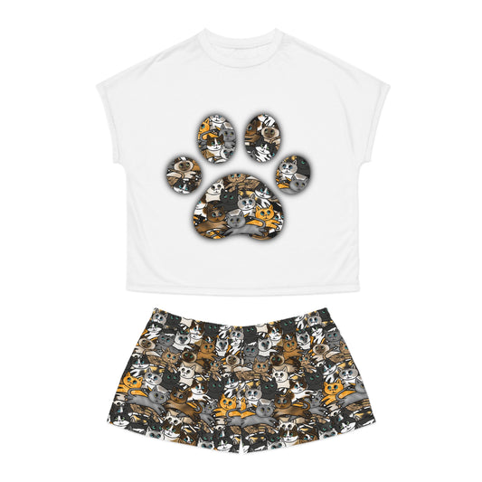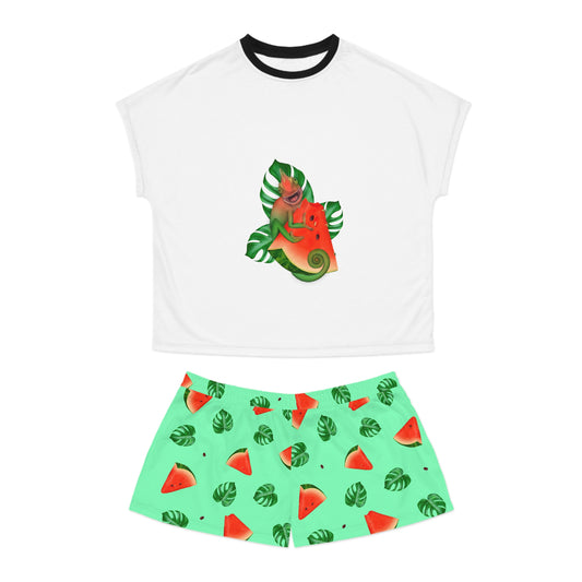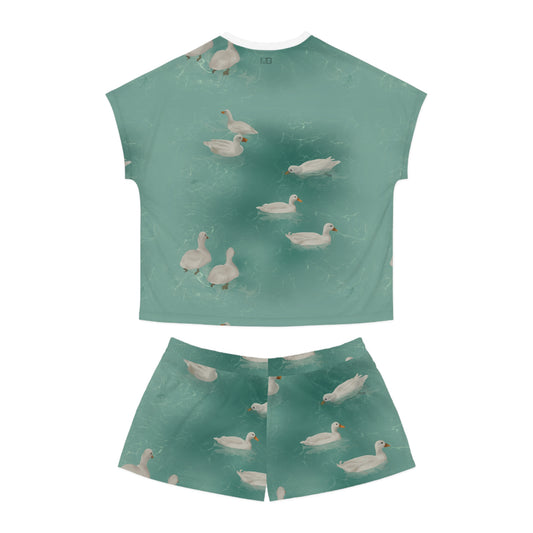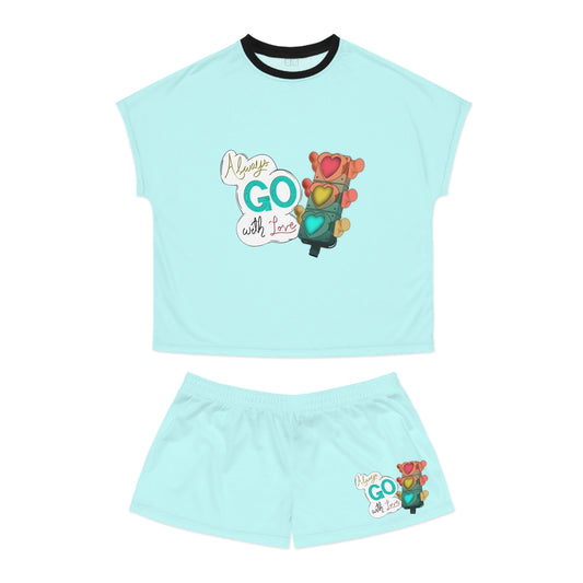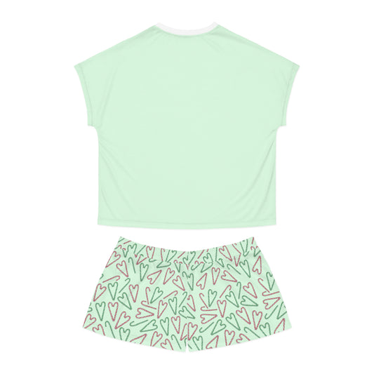 Candy Cane Hearts Women's Short Pajama Set (Green)
