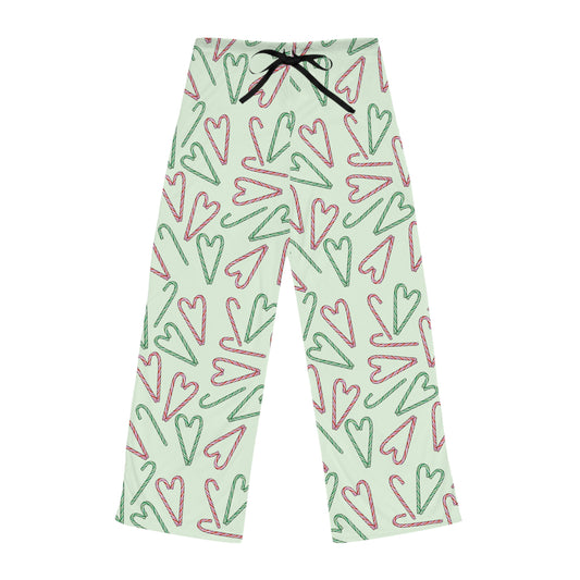 Candy Cane Hearts Women's Pajama Pants (Green)