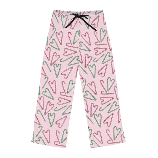 Candy Cane Hearts Women's Pajama Pants (Pink)